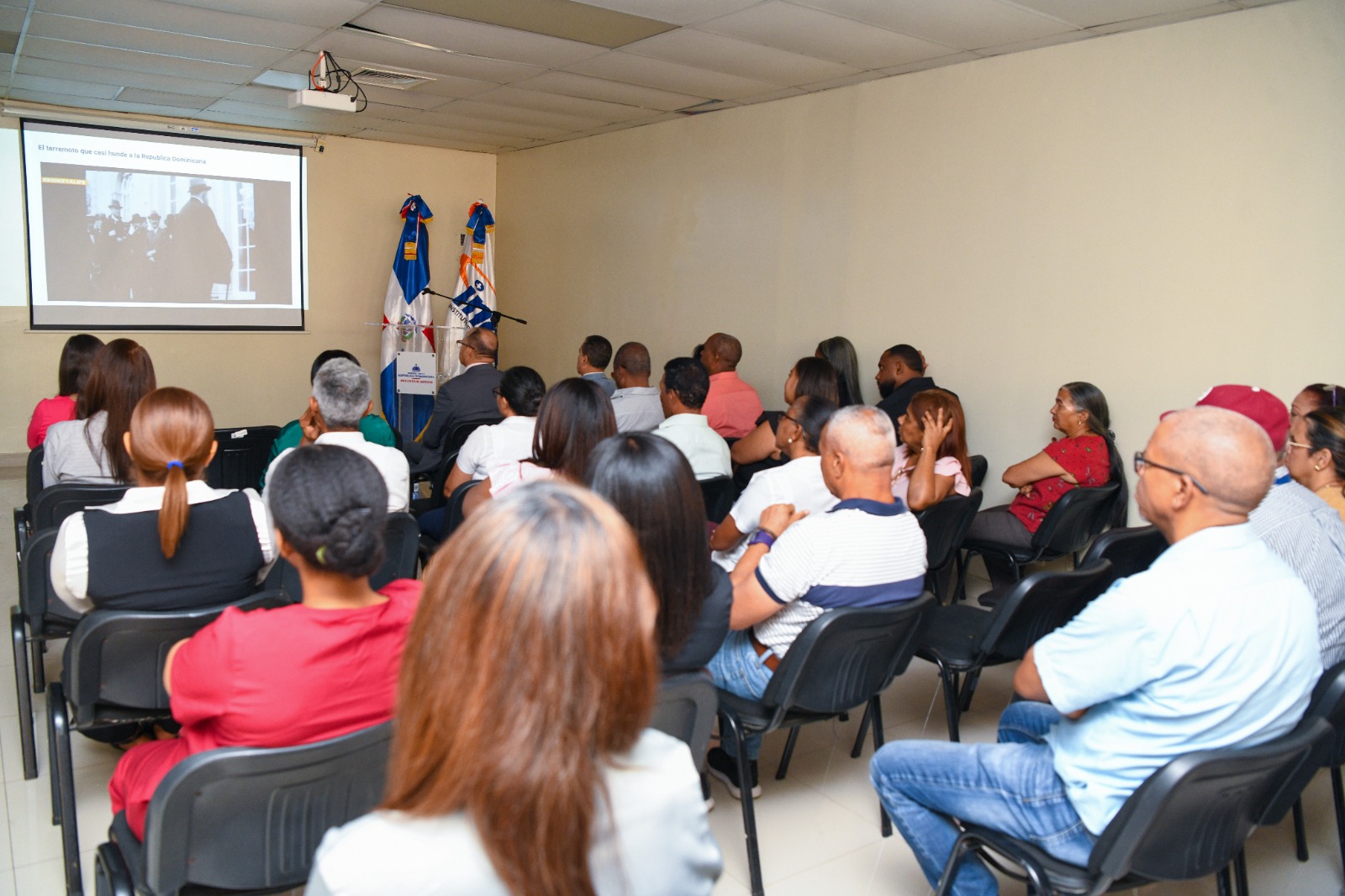 La ponencia estuvo a cargo del oficial superior, Dr. Gazpar Bello, quien al remontarse a la historia pasada y reciente sobre fenómenos naturales en el país, indicó que la falta de conocimientos y concienciación de la población fueron los principales factores que incrementaron la vulnerabilidad y pérdida de vidas humanas.