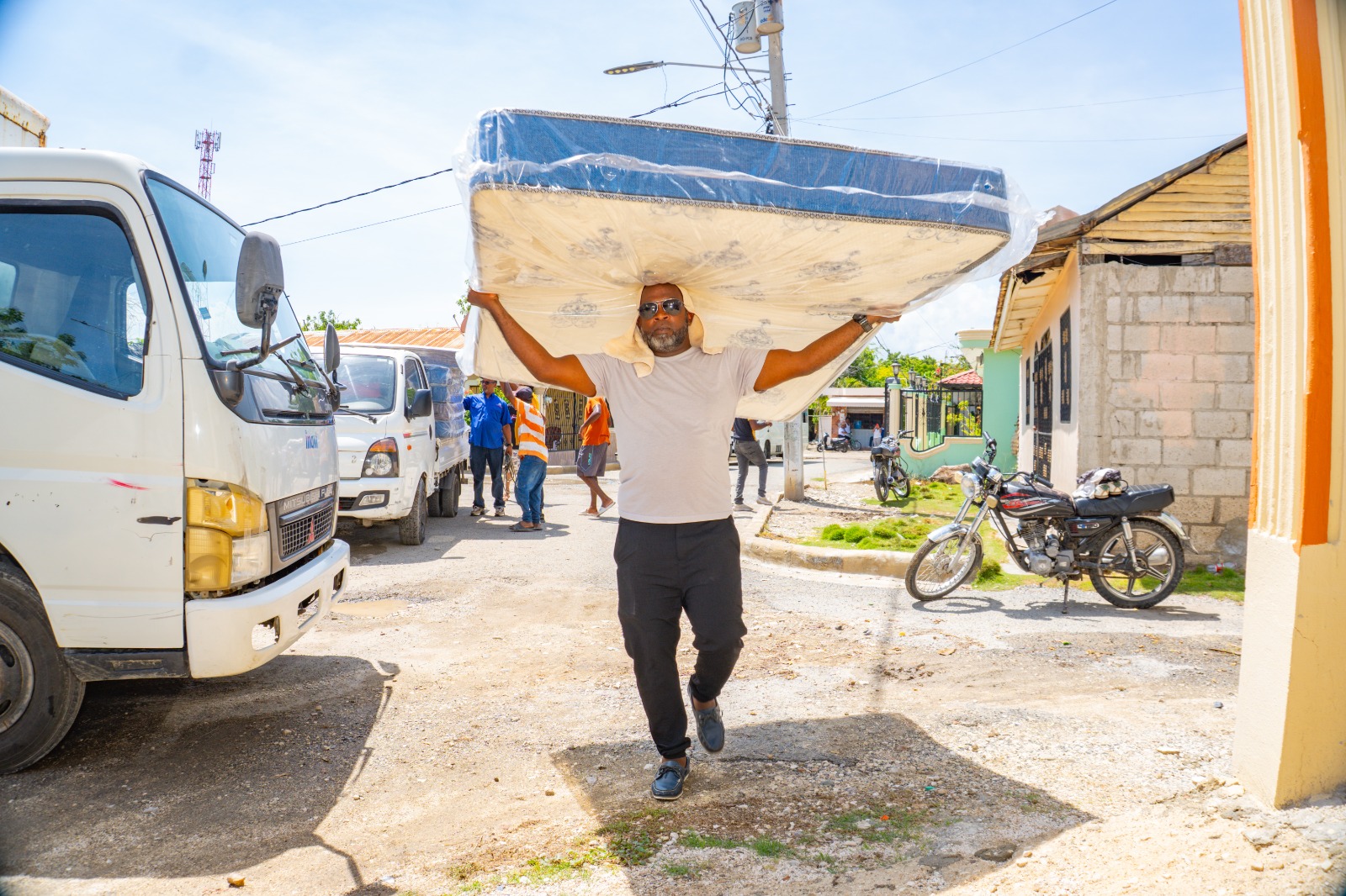 “Es interés del presidente Luis Abinader que ninguna familia afectada por estas lluvias quede desamparada y por eso hemos venido personalmente a cumplir con ese compromiso de llevar la mano amiga del Gobierno a quienes hoy más lo necesitan”, expresó el administrador del INAVI.