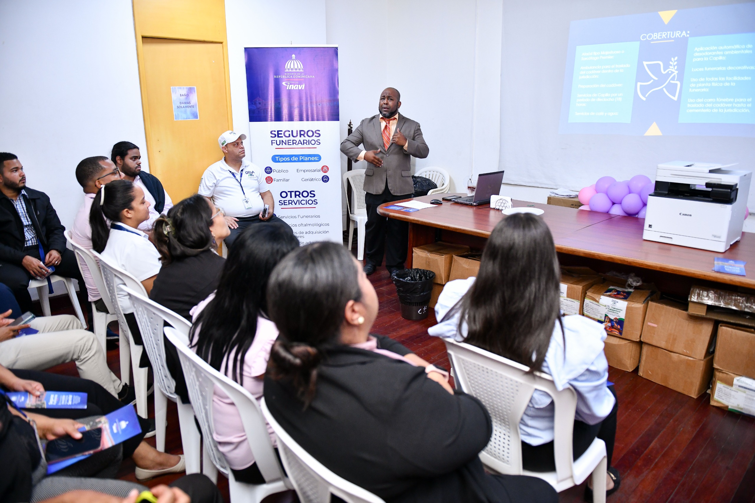 Cumpliendo instrucciones del administrador general del INAVI, Dr. Elsido Díaz Bueno, el encargado de Seguros Funerarios, Licdo. Deivin Jiménez, en compañía de técnicos de ese departamento, imparten charlas sobre los beneficios del seguro funerario e inscribieron una gran cantidad de colaboradores de 16 entidades estatales.