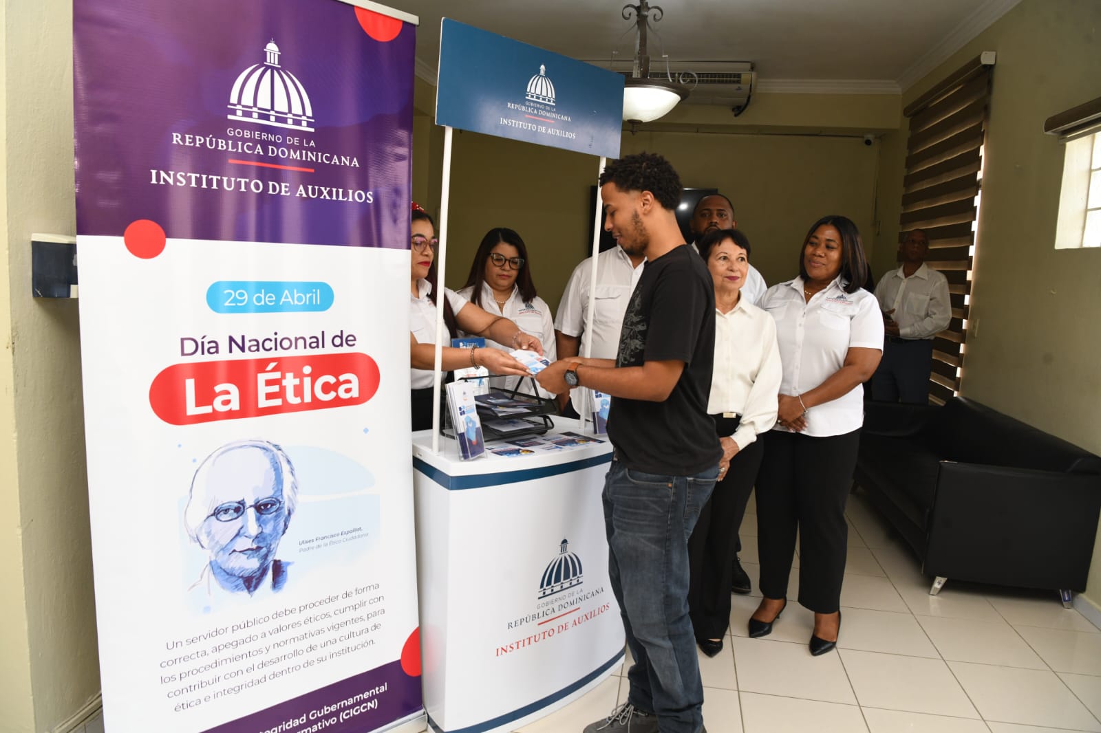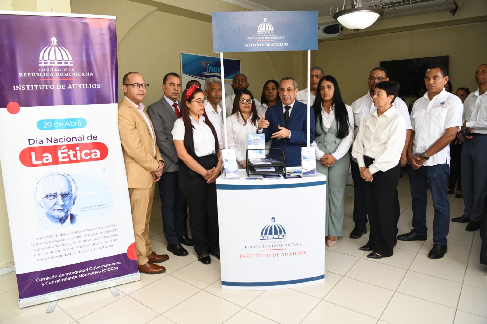 Durante un acto encabezado por su administrador general, Dr. Elsido Díaz Bueno, el Instituto de Auxilios (INAVI) dejó iniciada la Semana de la Ética 2026 con la instalación de un stand o punto informativo con materiales referentes a la ética e integridad y que invitan a los ciudadanos a realizar con plena confianza sus denuncias.