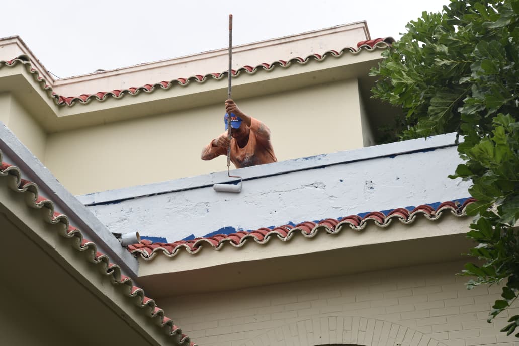 Técnicos y obreros del Instituto de Auxilios (INAVI) dan los toques finales a los trabajos de remozamiento en la funeraria de la avenida Pasteur, del sector Gascue del Distrito Nacional, con el propósito de ofrecer un servicio oportuno a la ciudadanía.